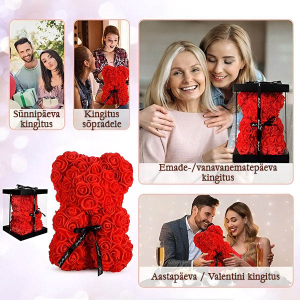 See kaisukaru on eriline käsitöökingitus, mis ühendab rooside pehme elegantsi kaisukaru võluga. Kui esitad selle ainulaadse loomingu, jätab see kindlasti mulje ja pakub unustamatu üllatuse.