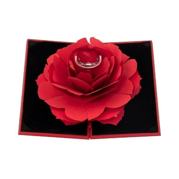 Kvaliteetsetest materjalidest valmistatud õhukese kühvli sees on vastupidav plastmass ja pehme flanell, mis kaitseb sõrmust, samas kui välimine roos on valmistatud kõrgekvaliteedilisest paberist, mis tagab realistliku ja ajatu välimuse. Selle kompaktne ja diskreetne disain võimaldab seda hõlpsasti mantlitaskusse pista, mistõttu on see ideaalne kaaslane ootamatute pakkumiste, tähtpäevade või eriliste kingituste puhul.