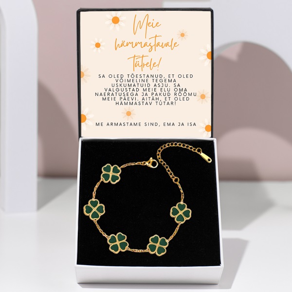 Igal ristikulehel on eriline tähendus – lootus, usk, armastus ja õnn. Olgu käevõru talisman, mis toob õnne igal sammul.