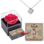 Kingi talle elegantsesse kinkekarpi pakitud elegantne kaelakee joovastava punase roosiga. Oma keeruka disaini ja maagilise roosilõhnaga loob see karp unustamatu hetke ja väljendab teie kiindumust kõige ainulaadsemal viisil.