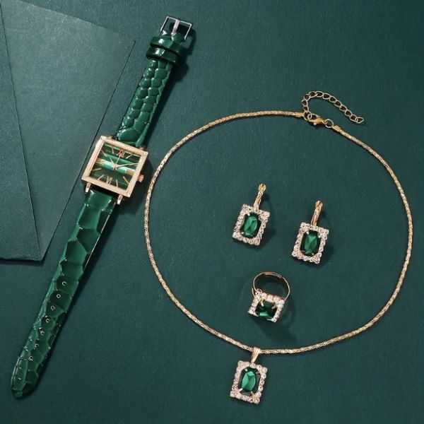 Selles šikis komplektis on silmatorkavates rohelistes toonides ruudukujulised vintage-kvartskell, mida täiendab pimestav ehete komplekt, mis võimaldab teil nii oma stiili tõsta kui ka jagada elegantsi oma lähedastega. 🎁⌚💚