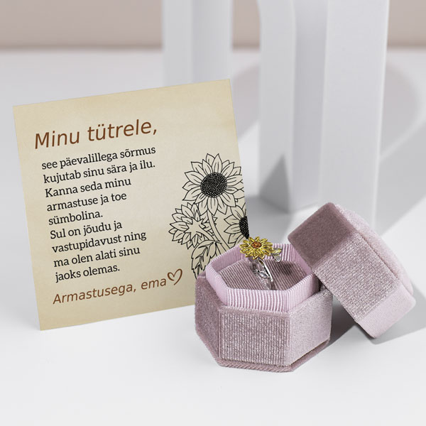 see päevalillega sõrmus kujutab sinu sära ja ilu.