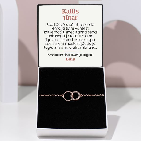 Avasta põimunud ringide maagia – käevõru, mis sümboliseerib igavest armastust ja sidet. Elegantne käevõru on ideaalne aksessuaar igaks sündmuseks ja väljendab teie sügavaimaid emotsionaalseid sidemeid.