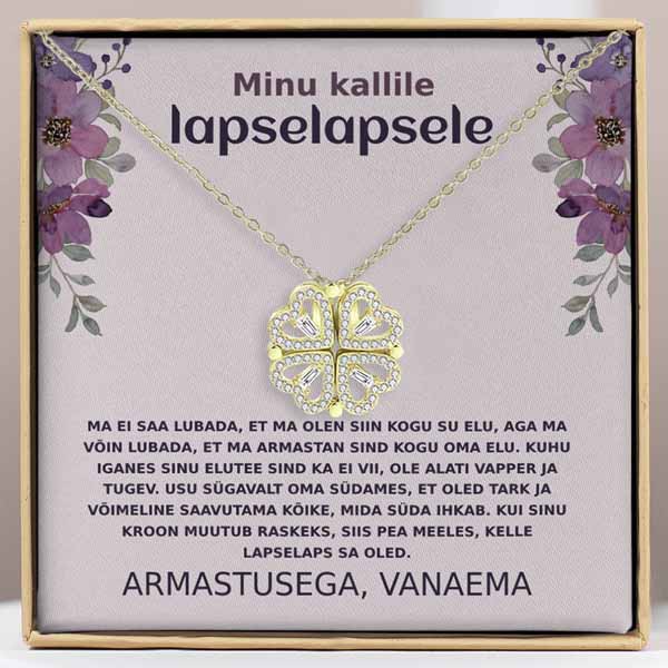✨ Näita talle selle ainulaadse ja uimastava kingitusega, kui õnnelik oled, et ta on sinu elus ja et sinu armastus on igavene! Meie kullatud kaelakee muutub lihtsalt neljasest ristikheinast südameribaks! ✨